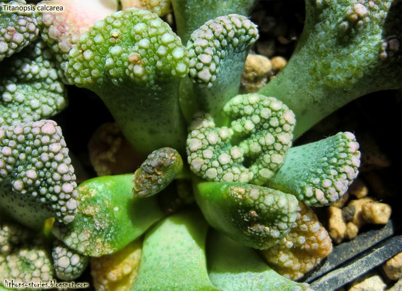 My Titanopsis calcarea seedlings are almost one year old (sown 1st of May 2013) and look at this beauty! Perfect shape, perfect color, perfect warts - love it! ♡