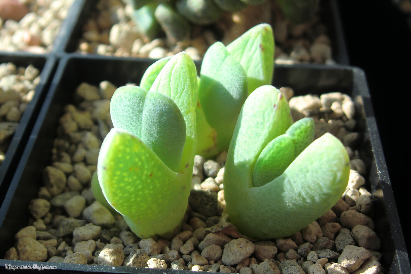 This Ch. cigarettifera however is the newest member of my Cheiridopsis gang. I just got two plants in February and am relieved they react to water. They seem to grow on stilts!